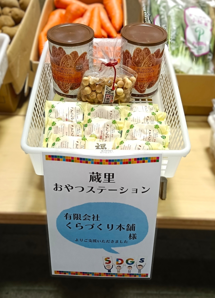 この蔵里おやつステーションでは、こちらに来ればたくさんの企業様、団体様からのご支援を